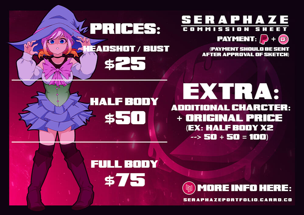 Hi! Welcome to my artist info! You can call me seraphaze, and I've been drawing for quite a long while now, but I started doing digital art during the end of 2019.
